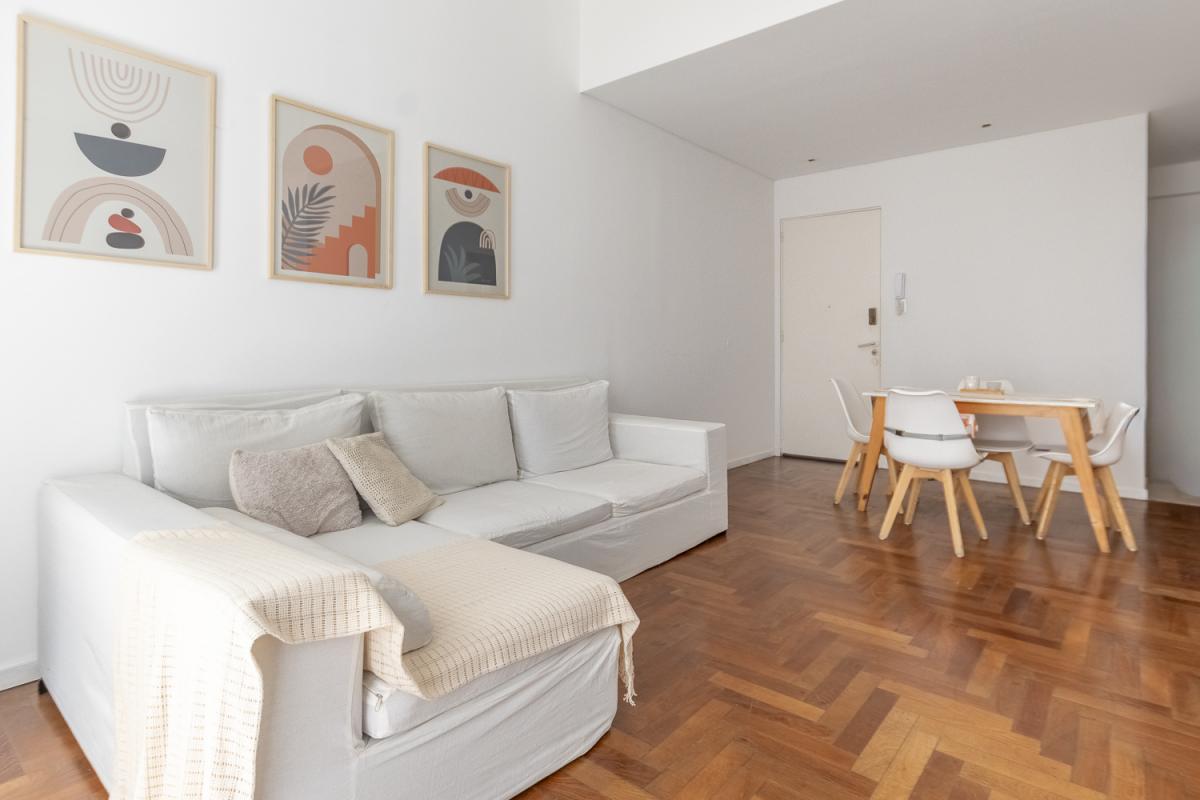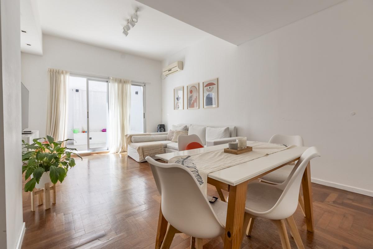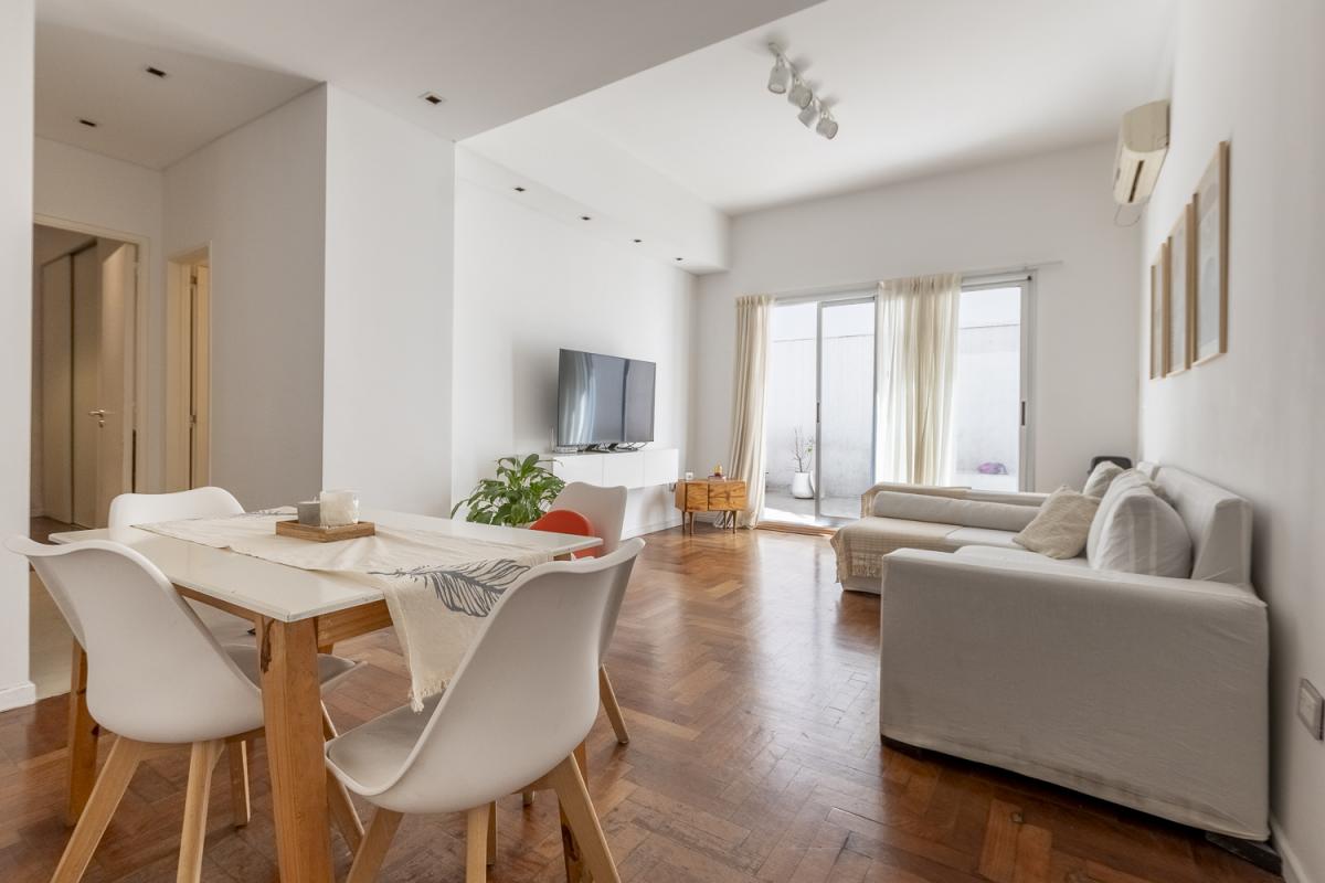 Este hermoso departamento combina la comodidad de una vivienda funcional y cálida con la ventaja de contar con dos patios propios, que llenan de aire y luz todos los ambientes, y una ubicación inmejorable frente a la plaza.